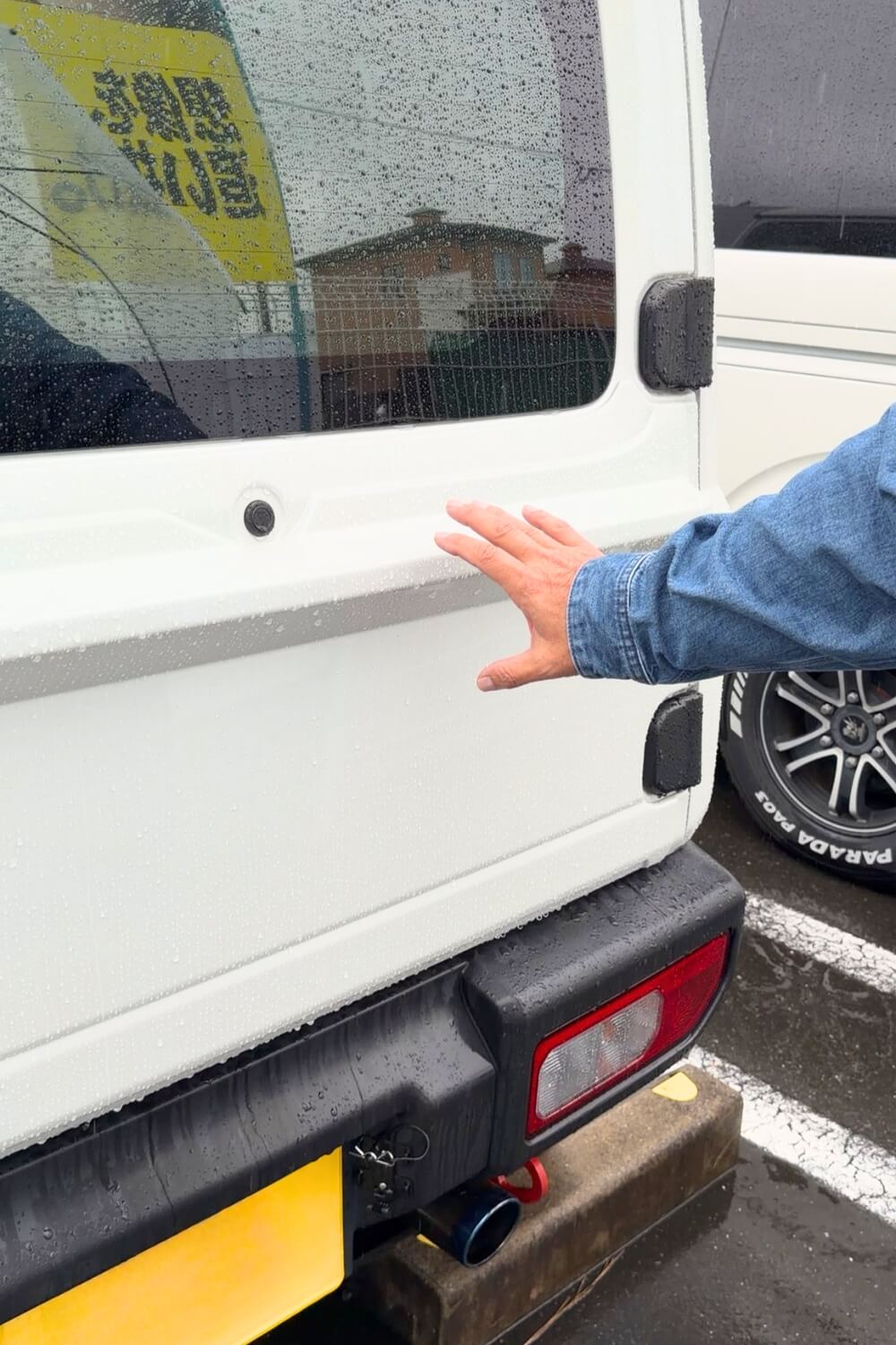昔から四駆に乗っている人なら分かると思うんですが、スペアタイヤを背負っていると、雪が降ったときにタイヤの上に雪が積もって、後ろが見えなくなるんですよ…。