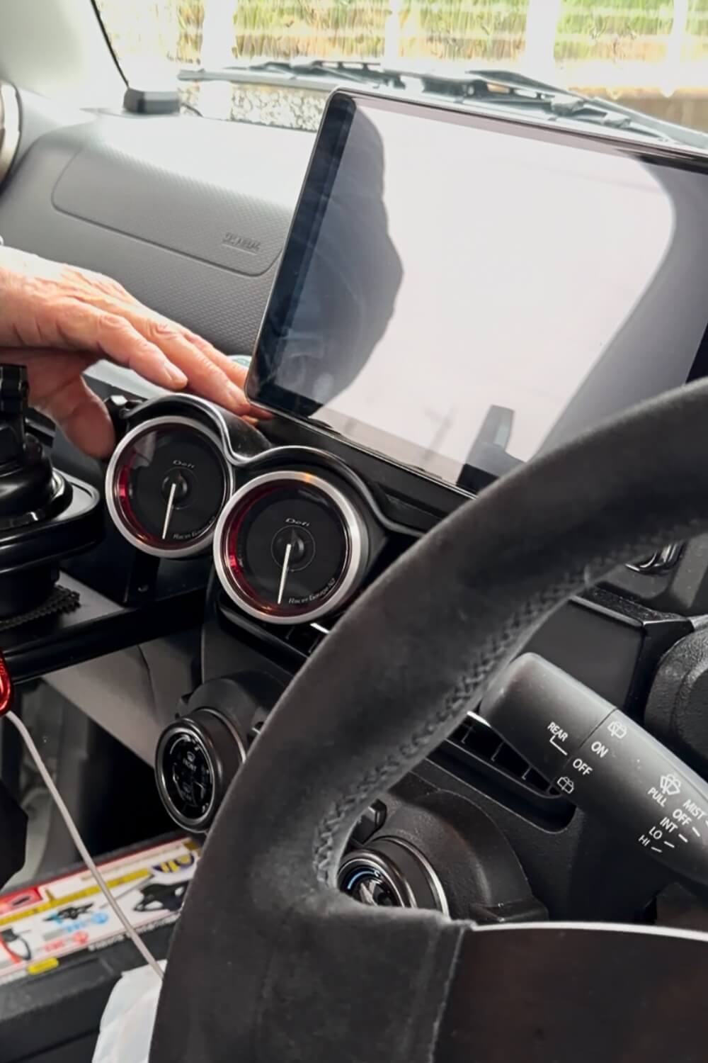 以前インプレッサに乗っていたときに、油圧計やターボメーターなどを付けていてそれが当たり前になっていたので、今回も油圧計・ターボメーターなどを追加して、運転中に自然と目に入る位置に配置しています。